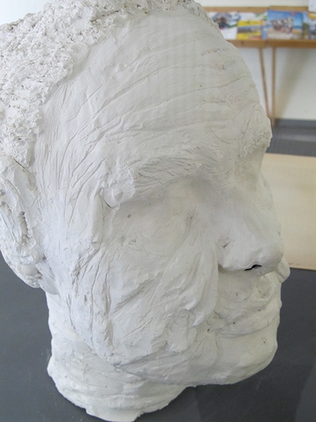 Die Schülerinnen und Schüler eines Leistungskurses nahmen an einem Bildhauerworkshop teil. Im Rahmen des Semesterthemas „Skulptur und Plastik“ schufen sie dort ungegenständliche Steinskulpturen. Des Weiteren entstanden im Unterricht im aufbauenden Verfahren Porträts aus Gips.