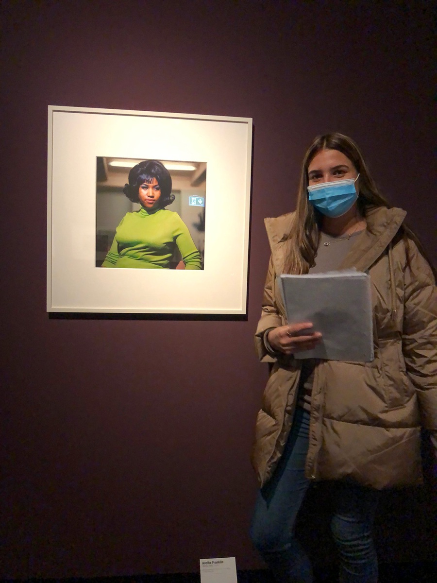 Besonders gefielen uns die Porträts der Jazzmusiker vor farbigen Wänden. Da im Hintergrund dazu die passende Musik, z.B. von Trompeter Miles Davis oder der Sängerin Aretha Franklin lief, konnte man gut in die Stimmung eintauchen.
