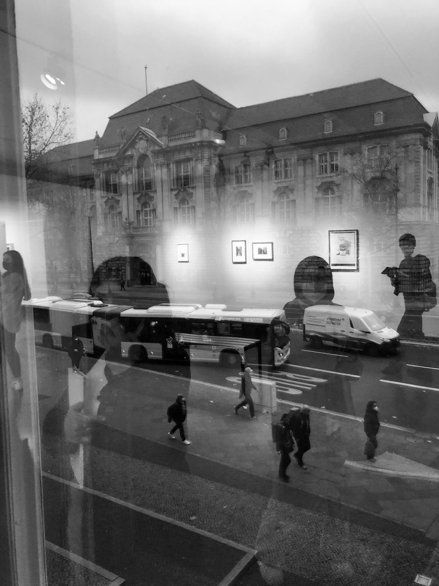 Am 15. November 2021 besuchte der Leistungskurs Kunst (Q1) die Ausstellung mit Werken des Fotografen Lee Friedländer (*1934) bei C/O Berlin. Wir bekamen Einblicke in das sechs Jahrzehnte umspannende Werk Friedlander: von seinen Anfängen als junger Fotograf, der Jazz-Legenden für Plattencover fotografiert, über seine ersten nicht-kommerziellen Projekte, die während ausgedehnter Roadtrips in den USA und Europa entstanden, bis hin zu seiner fotografischen Auseinandersetzung mit dem eigenen Selbst und seiner Familie. Oft wirken die Motive alltäglich und vertraut, wie z.B. Familienfotografien oder Straßenszenen. Zugleich haben sie aber auch etwas sehr Eigenes, wie durch wirkungsvolle Spiegelungen auf Fensterscheiben. Wir haben dann selbst auch tolle Spiegelungen entdeckt und fotografiert. Auffällig sind bei Friedländer auch die Schatten des Fotografen, die immer wieder zu sehen sind. Der Schatten, der oft vermieden wird bzw. als ein „Fehler“ in Fotografien gilt, wird von Friedländer extra abgebildet. „Ich mache absichtlich, Fehler‘“, so reagierte der Fotograf auf Kritiker.