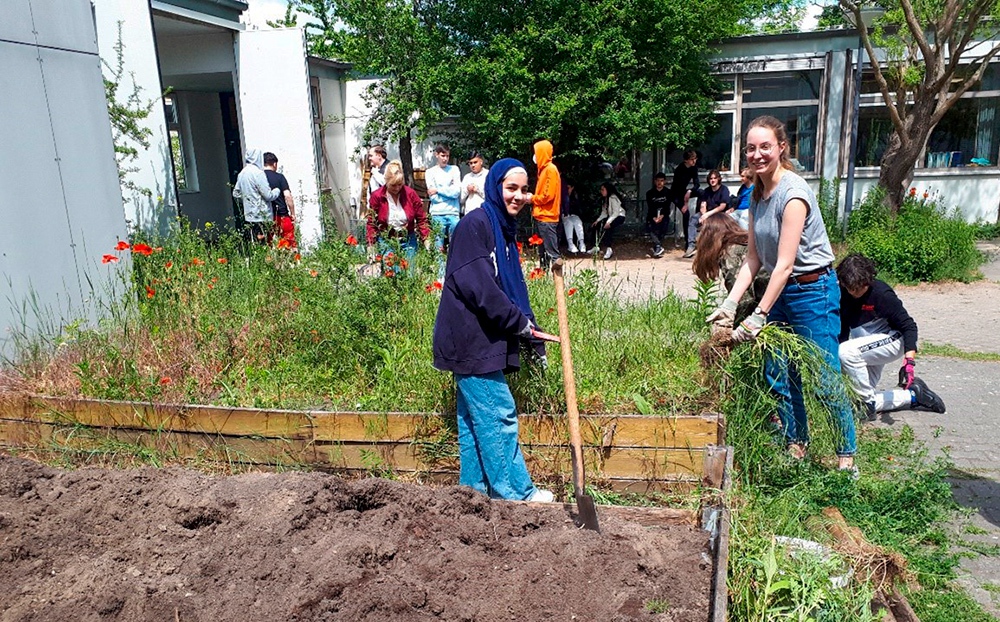 Dieses Motto schrieben sich einige Schülerinnen und Schüler der 8.3 auf die Fahnen und machten die Hochbeete der Schule im Frühjahr 2022 wieder fit.