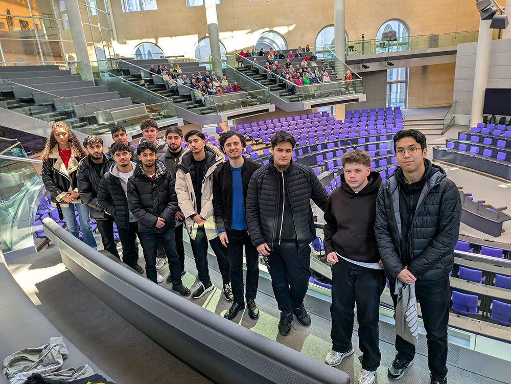 Schülerinnen und Schüler des LK Politikwissenschaften waren am 17. Januar 2026 zu Gast im Deutschen Bundestag. Sie besichtigten den Plenarsaal und die Kuppel des Reichstagsgebäudes und informierten sich bei Hakan Demir, dem SPD-Bundestagsabgeordneten von Neukölln, über seine Tätigkeit als Mitglied des Deutschen Bundestags.